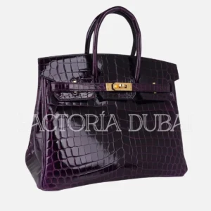 Hermes Birkin 25 Bag Aubergine Niloticus Crocodile GHW