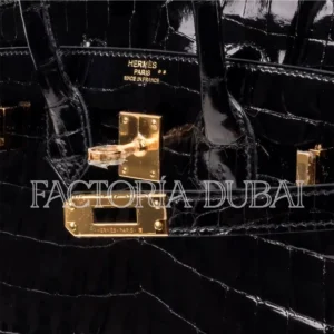 Hermes Birkin 25 Bag Black Crocodile Lisse GHW