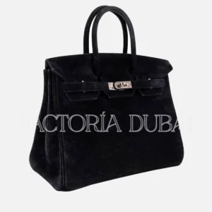 Hermes Birkin 25 Bag Black Doblis Suede PHW